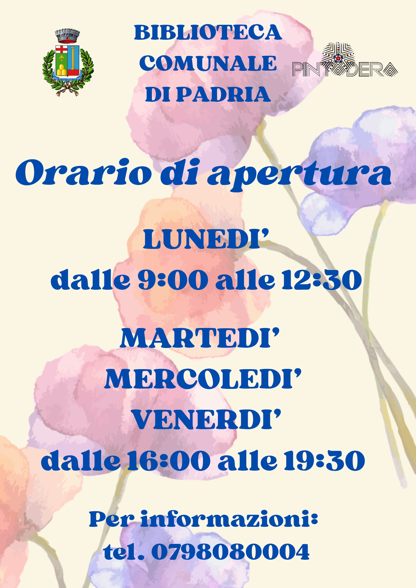 Di seguito vengono riportati i nuovi orari di apertura della biblioteca comunale