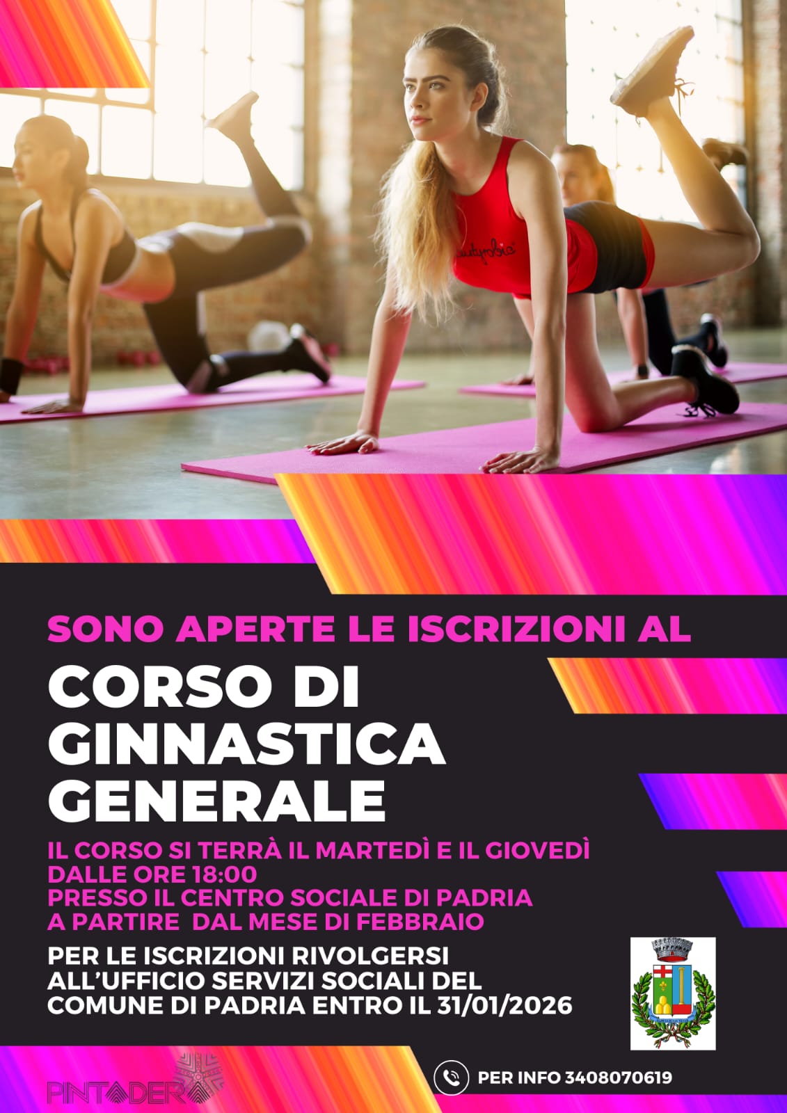 Il corso di ginnastica generale si terrà il martedì e il giovedì dalle ore 18, a partire dal mese di febbraio 2026 presso il Centro Sociale.